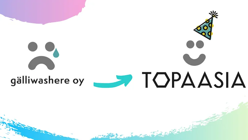 Yritysnimien ehdoton suosikki gälliwashere oy on virallisesti nimenä kuopattu ja maailmanvalloitus jatkuu nimellä Topaasia Oy.